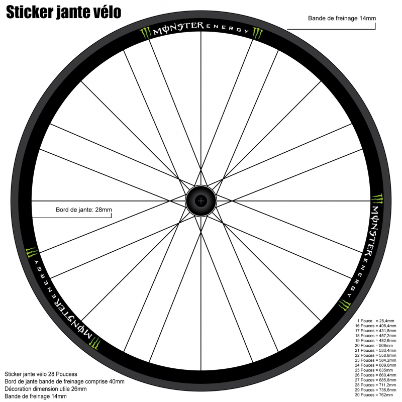 Hauteur minimum jante 28mm (bande de freinage comprise).